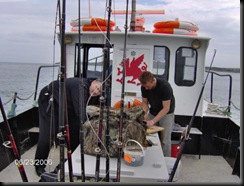 Making up dubby and bottles on the Diane [ PS. Another boat i wouldnt recommend ] for inshore wreaking for porby's.